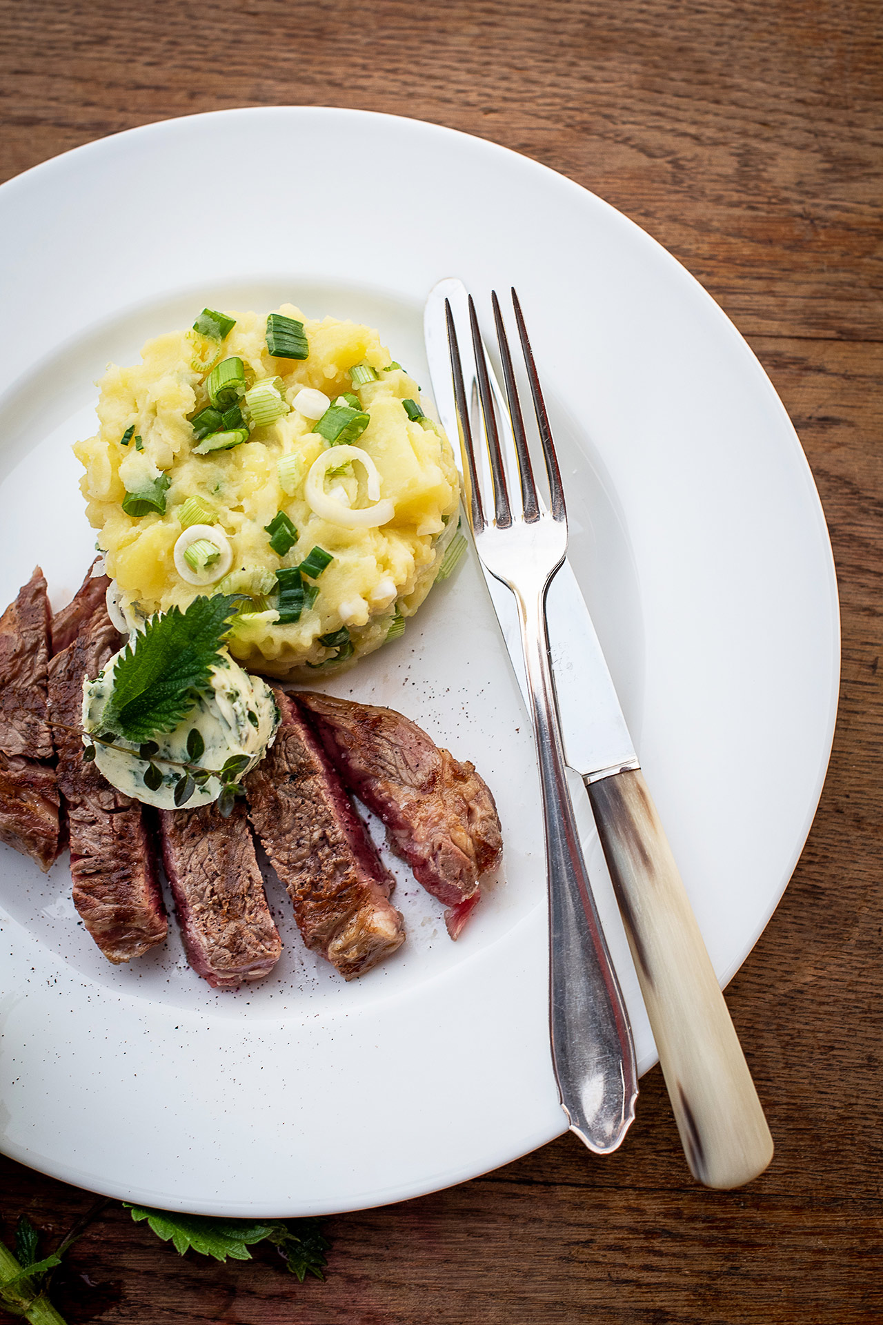 Nicht nur auf Fleisch, sondern auch zu Grillgemüse schmeckt die Brennnesselbutter gut.