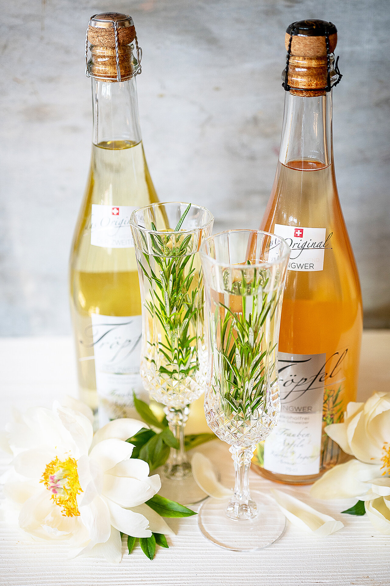 Eigentlich ist der Tröpfel so schmackhaft, dass man ihn nicht noch zu verfeinern braucht. Der prickelnde alkoholfreie Schweizer Schaumwein auf Basis von Trauben und Hochstamm-Äpfeln wurde von Patricia Dähler-Kraus und Esther Schaefer-Meier erfunden und wird in vier Varianten in Mammern am Bodensee produziert.