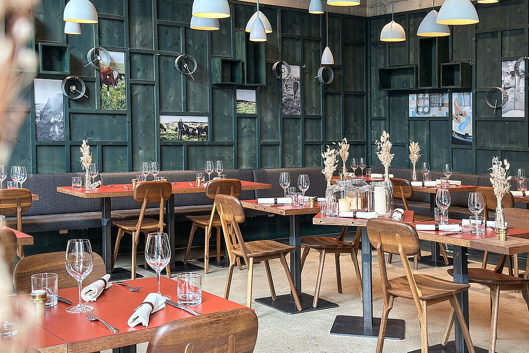 Das Käserei-Sortiment ist nicht riesig, aber sehr spannend: Neben dem Raclette («Gleis 18»), das für das Restaurant produziert wird, gibt es zum Beispiel einen Camembert namens «Wiis», er schmeckt buttrig und erdig. «Cinque» ist auch cremig, er wird fünf Wochen gelagert, deshalb der Name. «Bölä» schmeckt frisch, es gibt ihn auch in gereifter Form, dann zum Würzen von Pasta oder anderen Gerichten.