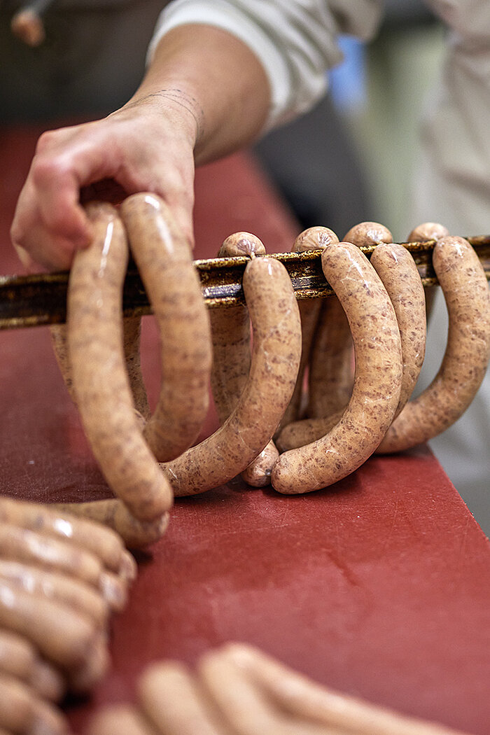 Aus ihrem Fleisch entstehen unter anderem Würste für den Hofladen der Familie Schütz.