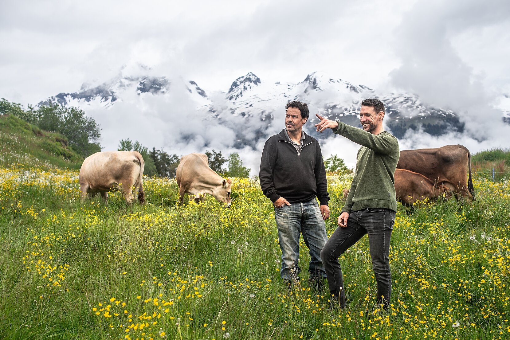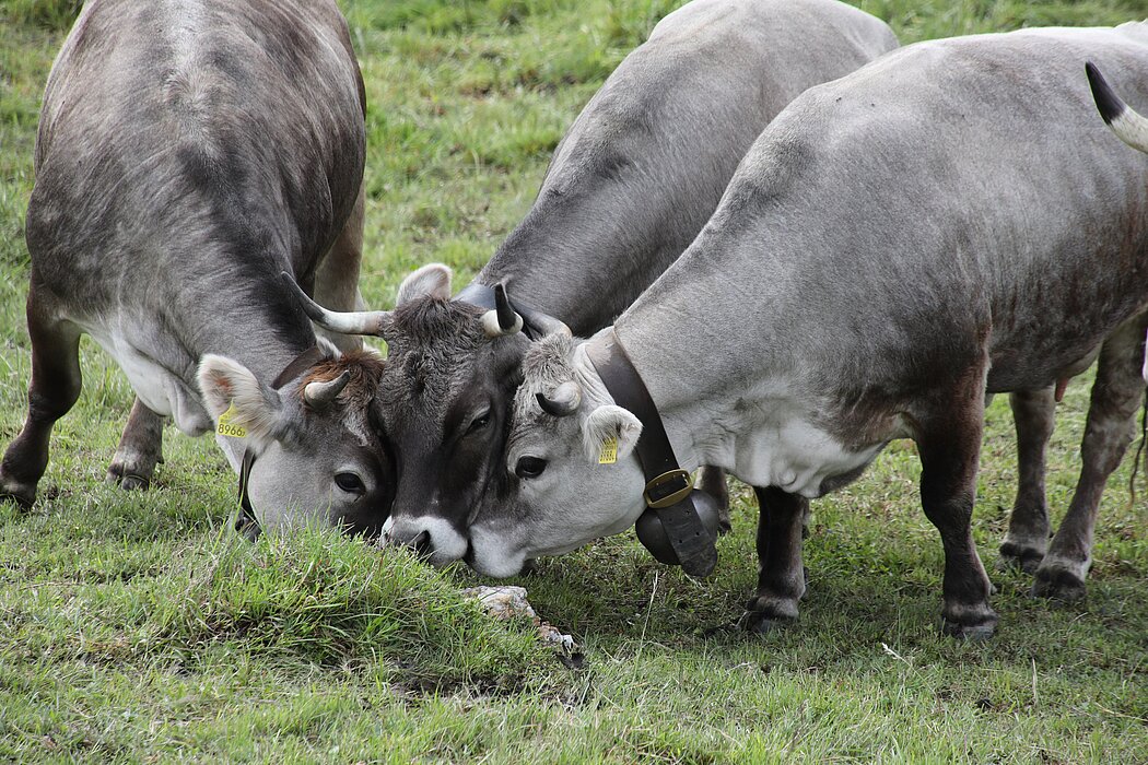 Den Sommer über sind ihre Tiere Tag und Nacht draussen und fressen auf den Alpweiden. Im Winter bekommen sie Heu und Grassilage und bewegen sich in ihren Laufställen. Sie bekommen kein Kraftfutter, sprich: kein Getreide oder Ölsaaten. Ihnen wird kein menschliches Essen verfüttert, was unter «Feed no Food» zusammengefasst wird. Sie stehen also nicht in Ernährungskonkurrenz mit den Menschen.