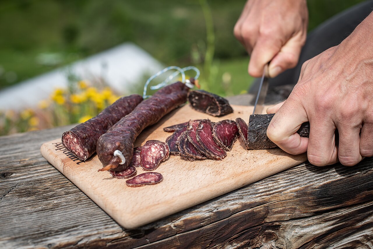 Mit einem Darlehen von seinem Neni – bündnerisch für Grossvater – hat er 2013 als Einzelfirma gestartet. Er wollte Trockenfleisch und -würste herstellen. Aus Rindfleisch aus den Bündner Bergen. Ganz ohne Zusatzstoffe. Was alle als unmöglich einschätzten, funktionierte. Mittlerweile beliefern ihn 80 Bauern aus den Bergregionen des Kantons Graubünden mit dem Fleisch ihrer Kühe.