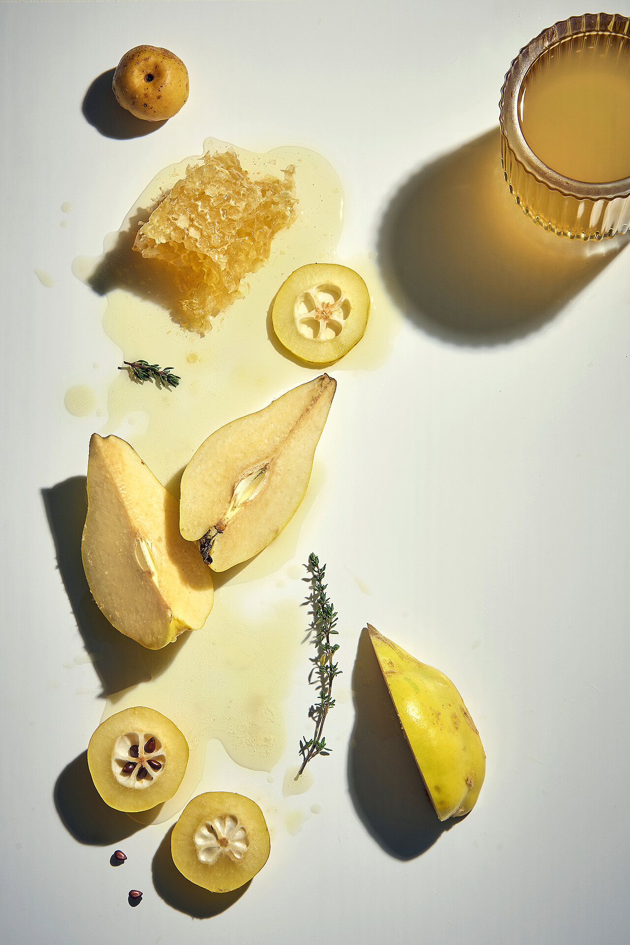 «Oxymel ist eine traditionelle Zubereitung aus Apfelessig und Honig, deren Ursprünge in der antiken Medizin liegen. Diese Mischung kombiniert die saure Note des Essigs mit der Süsse des Honigs und wird oft als süss-saurer Sirup verwendet», erklärt die Fotografin. Der Name «Oxymel» stamme aus dem Griechischen, wobei «oxys» für sauer und «mel» für Honig stehe. «Die Basiszutaten sind der Honig mit seinen entzündungshemmenden und antibakteriellen Eigenschaften sowie Essig, meist in Form von Apfelessig, der verdauungsfördernd wirkt und das Wachstum gesunder Darmbakterien unterstützt. Diese Mischung wird oft durch das Hinzufügen von Kräutern erweitert, welche in den Essig eingelegt werden, um ihre heilenden Wirkstoffe zu extrahieren.» Oxymel werden zahlreiche gesundheitliche Vorteile zugeschrieben. Es könne die Verdauung unterstützen, Entzündungen reduzieren, das Immunsystem stärken und als natürliches Energetikum dienen. «Zudem wird es in der Volksmedizin häufig als tägliches Tonikum eingesetzt, oft verdünnt in warmem Wasser oder Tee, und findet auch Verwendung in der Küche, etwa in Salatdressings oder als Geschmacksgeber.» Sie verwende ihr Oxymel je nach Jahreszeit mit den entsprechenden Pflanzen, sagt Hess. «Im Sommer als kühlendes Erfrischungsgetränk-Tonikum, zum Beispiel verdünnt mit Mineralwasser, und im Winter unter anderem als Auszug von Quitte und Thymian in lauwarmem Wasser.»