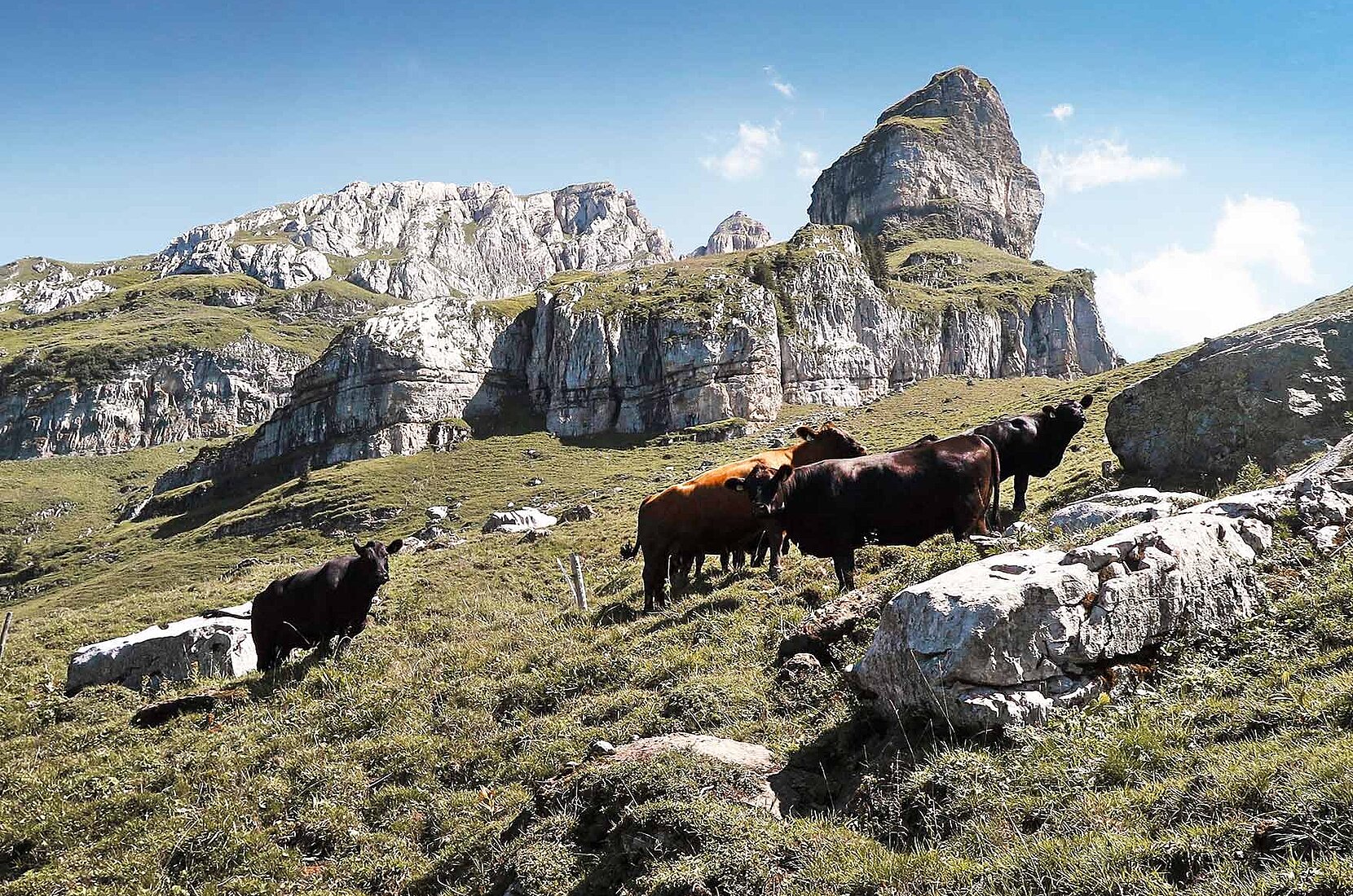 Die Mutterkuhherde auf der Alp im Muotatal.