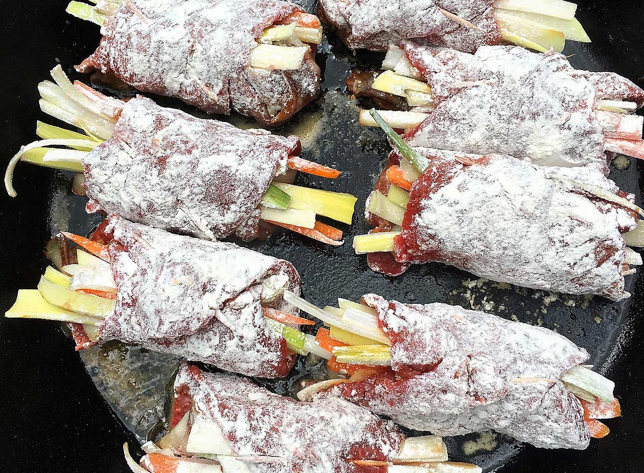 Fleischvögel mit Rüebli, Knollensellerie und Lauch.
